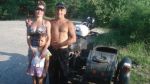 I stay another day in Barnul, not my best decision because I spend my day just weighting for Karill however Victor is riding down to the Ati Mountains tomorrow and I fancy the ride company and his local knowledge. These few days in Barnul at Victors garage is the first time Ive seen the fix anything attitude, Im told by everyone I speak to to be careful in the Ati region. The local people here are a breed apart ant not the type to meet in a dark ally. Ive heard this before on this holiday but this time its the advise from everyone I speak to and I will take note. So no wild camping in this region, which is a shame because its stunning. I drive the 400km into the mountains with Victor several bmws and transalps pass in the other direction coming back from Mongolia and Im surprised and embarrassed that that dont stop for a chat, Victor thinks no nothing of it and is in a hurry to get were were going. and am left at his friends place to camp. Its a bikers summer home and well known by all Russian bikers. On arrival Im dispatched to the shop to buy the alcohol. No problem, Ive received enough hospitality to undertake this task happily. The night deteriorates or escalates depending on your point of view into a fine Russian piss up and I have a wonderful time. After a few beers we climb on some bikes, not mine, and head off fishing, no luck. Again I am humbled by the thought that I cant imagine this happening in the UK. A Russian sauna, banua is lit and I get the full treatment. The sauna is as in the UK but much hotter than our H&S would allow but its a dry heat, no water is added to the fire. On the way back from the fishing trip we stop to collect young silver Burch branches, these will be used for wiping in the sauna. First time in is standard, sit in the heat, then out for a rest. 2nd time in and my host whips my feet with the Burch branches. Its a very gentle wiping but the branches have been socking in scolding water and brushed against the saunas wood burner are way to hot for me, the sawn s wooden bench is so hot I cant even lay my feet on it. I have to get up and out. 3rd time in and my host dips the branches in cold water before the wiping begins. It still hot enough to strip skin but I thing thats the whole idea, I enjoy it and my host is very good at the technique. 4th time in and I get a honey massage. Honey is pored over my back, worked in and scrapped of, ending a bucket of water being pored over me. Lovely. As you can imagine all this works wonders with the alcohol consumed and a great night is had by all. Im in no hurry and decide to hang around the next day and chill out here. After finding it rare that anyone speaks English, 4 out of the 8 people here do.