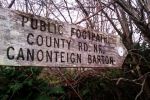 As Brian says the sign says that the Footpath goes to the County road at Canonteign Barton.