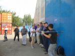 On the way to the Kyrgyzstan got stopped at a large road block, learnt a new bit of Russian no straft no straft. They took our passports and we were told the we had to pay a fine of 16000 teng each or about Ł60. So what does no straft means no fine so they say pay we say no. Told to go outside and wait, half hour later called back in the fine is now 16000 for all 4 or us! no straft told to go outside and wait. Sometime later the police come out and say how much you pay!!! no straft they go away another half hour passes and they come out and give us our passport and we are told we can go!!! I am going to try that the next time I get caught speeding in England. Chris who also share the container caught up with us and joined the group.