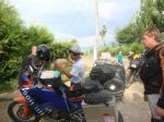 Notes: Stopped and hassled by the police, hit border, Chris snapped his side stand, repaired side stand, went to Tokmok had a pizza , up into the mountains over a bridge with holes in, fell down hole and wild camped cold night.