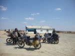 What a bastard day, the road was impassable for four wheel vehicles they simply drove across the sand plain. We came across several vans buried up to their axels in sand, one guys was trying to dig out a hgv with a shovel. The road was potholes with very big potholes some up to 36 inches deep and 6 to 10 feet long. Plenty were big enough to bury the bike in. Bottomed out on the bike several times L. And this went on for 100+ miles. Took 10 hours to do 200 miles (average 20 mph) luckily the last 200 was reasonable tarmac and took about 4 hours. But it ment riding after dark something that I had been able to avoid up to now. Not a nice experience! The road shook the bike to bits front fender loose, both rear indicators shaken off, chain guard shaken off but retrieved, luggage moved and melted my only shoes on the exhaust J the bike was in a sorry state. I tried riding the road, riding the sand near the road and riding on the plain, no difference just a long slog 14+ hours on the bike.