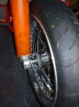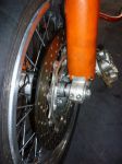 Now got the front in - this wheel is a non KTM hub laced to a KTM rim (back is all KTM) and uses a smaller older KTM spindle (I think) it came with loads of different spacers and some 'sleeves' to insert into the bottom of the fork legs to 'downsize' to take the smaller spindle.