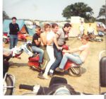think a lot of non scootering chaps would be surprised to hear,scooter sport is very popular, with sprinting, scooter cross, grass track and track racing, all of which i watched in my scootering days, even took my lambretta 240cc on the 1/4 mile at avon park at a repectable 94 mph for a road going bike, and scooter cross is nuts, wouldnt think i would want to try some of it on my 450 lol, couple of photos for you to giggle at, one of me in 79 on my lambretta, and one of my 240cc in late 80s