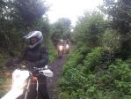 Something I've noticed since moving back down here is that with every trip out, however innocuous it seems, always seems to end up in some sort of drama. Well when out riding last time, weirdly a squirrel landed in my lap from an overhanging tree, I'm not sure who was the most surprised me or my new rodent friend, any it scarpered PDQ. However, today, Chris took it upon himself to bag a squirrel for himself, by launching the rather bulky KLR up a lane-side tree! Unsurprisingly, gravity had something to say on the matter and he baled big time, destroying his number plate, indicator and clutch lever. So 10 minutes later he and the remnants of the 'team' exited the lane down in the holiday park. Luckily, the immense bag of crap I carry on the back of my bike actually contained a spare lever for my Serow which was a perfect replacement, 5 minutes spannering and we were back on our way. We meandered across a number of other lanes in the exotically named North Star area, culminating riding up to the viewpoint looking east to Sidmouth. Here Harty regaled us with the story of the rider on one of his runs who ripped his elbow apart falling on the slippery roots, criss-crossing the lane near its end. The same roots Harty had also done his knees on previously. Hence we were all very circumspect riding that section, however, it was dry so nothing too testing.