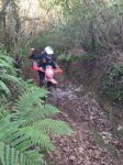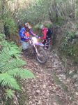 When he tried to start it on the buttonit locked up, so we up ended it and drained it out.After this we tried turning it over on the kick start and all seemed ok so back on both wheels and we tried it on the button again and we were away again, first 321, 155 and 156 then 245 where a 4 x 4 had to reverse out the bottom for us and then down into Totnes for another fuel stop and lunch at the garage.