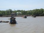 Mr Phungs parting comment was if you can ride in Vietnam you can ride anywhere, and it certainly was a very different experience being amongst the Vietnamese traffic to trail riding in the UK. Mopeds rule the city streets, and as we were all travelling at the same speed, you sort of ebbed and flowed. Traffic lights have a countdown on them, which seemed very sensible, you could slow on approaching a ten seconds to go red light, and ease through without coming to a stop as it changed to green. There are literally thousands and thousands of people moving about on scooters, carrying all sorts of goods. We saw , but didnt photograph because it all happens pretty fast, people carrying sheets of glass, live pigs, 8x4 sheets of board, enormous suitcases , chickens in baskets, mum dad and two kids, a fridge freezer, just about anything and everything. Out of the Cities, the roads are ruled by the pink buses which tear up and down the country, and these are the ones to watch out for. We often came across a bus overtaking a lorry, which was overtaking a car, which was overtaking several scooters, all on a blind bend, and not surprisingly we also came across many crashed lorries and broken down buses. We decided that actually the safest way to pass four wheeled traffic was usually up the inside, then you could always run off into the field or whatever if need be, but getting squashed between two speeding lunatic bus drivers was just too scary. So the riding was challenging.