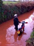 I thought he did the right thing and isn't a plonker - obviously local knowledge plays a big part but how many of us have ridden through a small innocuous puddle to find it deep enough to swallow a bike? I know a few who have, and the old "submarine pen" in Ebford is a good example of such a place.
