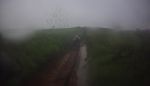 My goggles were so steamed up going down 074 that steering was more an act of faith than choice, and vision was restored in time for the blind exit from 073. Simon almost followed the new tarmac into the field next to the misleading home made Footpath/Bridleway sign pointing to 081, but made short work of the red mud splash before the rocky branch strewn climb. We zigzagged down 094, paused on 105 for a dog walker waiting for his elderly lurcher, and romped down 106. The forecast rain arrived and the Contour went into its waterproof box on 125 where the red puddles were unusually shallow. The repairs on 134 and 334 are less tidy these days and many large rocks have escaped to make the bowl shaped lanes more interesting, and the stream down the middle of the lane near the mid point brings out the schoolboy wanting to make a splash. Deep sided ruts on 155, but no mud to speak of. The puppy the sign on 156 tells of must be getting on by now. For a road not on the map C-074 sure has a lot of tyre tracks, and we turned left at the crossroads climbing over the hill on 160. Skipping the ford we corkscrewed up the hill on 164, 428 & 310. Slithering down 435 past the new landslide we spun the mud from our tyres before the stream on 166 washed them. Keeping both wheels in the same rut as we climbed 187 we began descending 201 after the gate. Simon suddenly turned sideways on some slippery slate and drove into the hedge for a closer look, and struggled to extract the bike from the overhanging greenery while I struggled to smother the laughter.