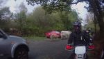 FredE, NickJ and Mattyboy were briefed to make sure the man behind knows where to turn and warned how to approach the perpendicular steps placed by the water board at the entrance to Conitor lane before we set off. The muddy patch on the dog leg after Stubbins cross has been tamed but not eradicated by repairs. A large white van made me swing around wide at Chercombe bridge to begin the short rocky climb, not the first white van detour of the day. The giant lego bricks have been scattered by the 4x4s playing off-road before Holbeam lanes ford and the long deep puddles are shallower these days. A farmers green quad shot out onto the lane past Otter court as I approached his gateway and I slithered to a halt next to him and we exchanged pleasantries. Trevor and wife going the other way paused to say hello a little further on and we continued when the quad caught up with us again. Descending Colesworthy cross lane I saw ahead of us over the hedges the first of many horse riders whose paths we were to cross during the ride. We pulled off the track and killed the engines and were thanked by the grateful riders as they passed. On our way to Furzeleigh lane we puttered slowly past a rider who had lead his steed and another on a halter into a gateway, then leaned our bikes into the hedge for another two to pass a bit further along.