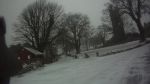 Normally splendid views were replaced by threatening dark clouds bearing more snow as we followed the twisting byway down the white slope to Leighon.