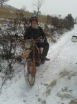 Holbeam lane's deep 4x4 induced puddles have icy lids covered in snow waiting for unsuspecting trail riders as Trev found when his rear tyre went sideways, very suddenly as you can see from the tyre tracks