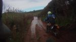 and after a glance sideways to appreciate the floral abundance I left the brakes alone and enjoyed letting the CRM flow over the many undulations on the long downhill while enjoying watching Ray doing the same on the KDX. Overhanging branches tugged my camera off it's velcro mount on Copland lane and the lanyard did it's job of saving me the bother of going looking for it. Once deep puddles have been cured by large amounts of stone infill on Lower Copland lane but deep red water is still worth slowing for, or you end up wearing it.