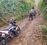 As for riding etiquette, absolutely you can mix small bikes with big bikes but it all comes down to ability of the riders and what the run leader recommends/ allows on their ride. In this instance it was advertised as an 'Advanced Bike Bike ride' by the run leader so ability was the key factor here and less so being on a smaller bike, although the guy on the Husky 701 got a bit of a jokey ribbing as his bike was more middleweight than full Adv (the categories generally being: small bikes = Enduro type bikes (four stroke or two stroke) and usually approx. 100kg odd. Middleweight bikes would be the KTM 690 Enduro R, Husky 701, AJP PR7, KOVE 450 Rally. Single cylinder four stroke bikes at approx 150kg. Then the full on big Adv bikes are the likes of your Tenere 700, KTM 890, KTM950/990, BMW GS, all with more than one cycllinder and weighing 200kg+ odd)