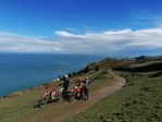 Our route then took us north to Ashelford and 180-022 which was a lovely lane dropping down to a small bridge over a river. As we ascended up the hill after the bridge we hit a gate to a field with Private written on it. Wed gone too far as the route took a right hand turn part way up the hill that wed missed but this was now a restricted byway so we had to ride around (its status probably having changed given the age of this route). Back on track we headed west along the A3123 into Ilfracombe and Langleigh Lane (180-009) which is the South West Coast Path overlooking the Bristol Channel with Lundy Island in the distance. That weather was bright and sunny and the views were spectacular. As we come down off the coast path we passed Lee Bay where there were lots of dog walkers and families playing in the rockpools. Eastercott Lane (180-017) started off very snotty and slippery and we all struggled for traction before finding the firmer ground. We passed a couple of young walkers in the lane who smiled and waved before we exited on the main road into Woolacombe. Heading east again we rode Trimstone lane (180-018) then crossed the A361 into 180-208 Dean Lane which was full of long and fairly deep puddles. Rob Rice (aka Muffy) may recount this lane as this is where - all those years ago he drowned his new KTM Germany Six Days bike. As one of the first fuel injection bikes and with no kick start which is commonplace these days he killed the battery trying to start the bike. I cant remember how we got out of that situation tbh but I dont think it ended well.