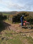 To link us to our route we headed SE and hit 202-046 Wickeridge. Despite having informed the group of the second man drop-off riding sequence that they all said they knew there was some re-establishing of the rules at the end of the first lane as the second man had forgotten to stop. Onwards through Knowle and continuing to head south we hit the A384 Buckfastleigh to Dartington road turning into 202-087which was a sloppy affair as always. I actually saw AN-other trail rider on Facebook posted that hed been trough her on his KTM 690 today and got stuck in the mud which took him nearly and hours to extract his bike, DOH!! Through the farm a gate which was kindly held open for us by a smiling young lady then onto Caddaford lane where we saw our first little mishap. Terry got his 300 slightly crossed-up on the bedrock base of the lane probably just as it was hitting the power-band and it spat him off breaking his cluth lever. Fortunately one of his friends had a replacement lever and it was replaced in no time and we were on our way again (Im not sure what the RRP of such an item is but in times like that the price is most definitely a LOT more expy!! ha ha) At this point another of the T2T groups passed us. Heading down Suicide Ally (202-063 a steep descent) into Buckfastleigh we then headed to a great lane, 202-305 near Hembury Castle woods. This is a cracker of lane with a mix of surfaces from hard-pack, to slippery mud then a little water splash and some large-ish rocks at the end. At this point the sun was well and truly up and it was a lovely warm day. A loop around the lanes at Holne (202-041 & 202-402) then northbound to Lower Town and a short stop at 191-096 for a choccy bar and to strip off some layers. Mark (Husky 501) needed to adjust his chain slightly but asked for some help as too many sherbets the evening before meant he was feeling a tad green and leaning over to attend to his rear wheel likely would have resulted in something rather unpleasant so I assisted his need. Onwards to East Shallowford and 191-085 and 191-086 where we encountered some Dartmoor ponies in the road, three of which decided to flee up the lane we were riding. Carefully progressing up the lane but ever conscious we were pushing them towards the closed gate onto the open moor Im sure Russ who was leading was wondering what would happen. At the closed gate the ponies has a moment of panic before bolting back past us all back down the lane. This is a great lane that has a some tricky boulders to negotiate in the small wooded area at the northern exit into the farm. The lady farm owner had just pulled up in her car as we closed the gate behind us and she gave a smile and wave. At the top of her driveway and heading back out onto the road we met a horse rider stood with her horse. She let us all pass and as I closed the gate I had a pleasant exchange with her then we both went on our way. The long lane up over Widdicombe in the Moor was next and an opportunity to do a spot of filming but the slippery rocks proved no challenge today as it was nice a dry. Descending the other side we passed a couple of mountain bikers. 191-083 at Bonehill rock was next. We entered from the northern end and met a husband and wife walking near the gate. They didnt seem too pleased to see us and I tried to break the ice with a friendly comment. The husband made a somewhat friendly exchange but there was a distinct undertone that he was not impressed with our being there so we quickly passed through the gate and headed on our way. At bone hill rocks the car park was full as were all of the car parks along this stretch and heading to Haytor Rocks and when we got to Haytor Rock the people were out in their droves, the tor in the short distance looking like it was covered in ants given the amount of people clambering all over it! Here we veered off our route and headed via Tipply Hill Lane (191-090) into Bovey Tracy for a petrol stop and a quick snack.
