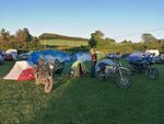 At Midfird we had dinner before setting off for the short journey to a nearby campsite. The campsite hadn't answered the phone so we were chancing it regards availability. Knowing that it was attached to a pub and it being Saturday night we knew it would be busy but it was heaving! Luckily they had space for us so we paid our fee and found a pitch. A quick shower then off to get a drink whilst we watched all that was unfolding. There was a balloon festival so they inflated a few balloons on the grass. The music was playing in the barn amd everyone was having fun. Relativity early nights for us though cos we were all pretty knackered with another early start planned for day 3 tomorrow. Bring it on.