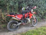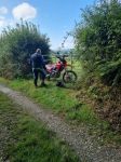 Today he had one puncture, so we removed the tube and changed it the old one was worn through on the side wall, so we carried on for a few more miles and then another punchure , just before we got to Woolacombe, so we limped into the garage there and tried some tyre weld as we had no puncture repair kit, we werent overly happy with the tyre weld but carried on towards the lovely coast path lane at ilfracombe but it wasnt to be it was flat again, we put the remainder of the can in but it still wasnt holding , so as time was against us we decided to head back, only trouble was we were about as far from are start location as we could be 45 minutes dash on main roads but with a flat rear tyre, off we went !! After about five minutes Trev nearly had an off when the back end stepped right out even on a straight so we decided it was a better idea to put his spare front tube in the back, once done off we set again and finally got back to the car park around 5, still a great day and most of the lanes that we did were new to both of us, Im sure well be back to finish the route one day, purple track in pic one is what we did, blue we didnt complete, thanks Trev for another adventure, I recommend BIB mousses