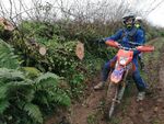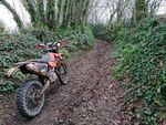 From here it was onwards towards South Brent where after crossing through the underpass under the A38 on Portford Lane the uphill tarmac backroad was really badly eroded along one edge from water erosion, so much so there were traffic cones to warn drivers as they'd definitely lose the side of their car down there! Back under the A38 and heading towards the scrap yard at South Brent and the duo of lanes that led us into South Brent, the first lane of which is becoming really rocky and washed out and the second which had some tricky off-camber slab rock which looked really greasy and slippery so the front brake was left well alone!