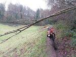 The lane at the back of Totnes Cross was next and there were several trees down in this lane, but all passable on two wheels.