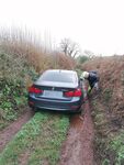 Entering Harbertonford we did the little lane past the allotments - this was very slippery! - then we cut back on the lane taking us back into the village where we encountered a stolen vehicle, a grey BMW 320d. The registration plates had been removed and conveniently the VIN No. behind the windscreen was covered by a pay-and-display parking ticket......very sneaky.......but we still got the VIN off the driver door jam. The car was unlocked and stank of weed so definitely stolen!