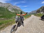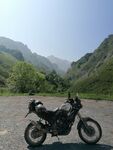 Kirky and I were taking pictures and Jules and Jase were up ahead. We heard them on the comms saying there was a blockage of bikes on a hairpin bend ahead. They turned back and came to the clearing where we met a German guy in a T7 who'd been travelling for 2mths and an Irish guy on his CF Moto 450. We chatted and chucked about the GS riders stuck on the bends ahead and waited out the chaos before heading up ourselves. When we'd scaled the switchbacks we hit the ridge. Well, I've seen YouTube footage of the ridge and heardy mates tell le about it but nothing prepared me for it. It was phenomenal. The absolute highlight of the trip.