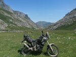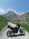 Sotres is a dead end village but we stopped for a drink before hitting THE trail we'd all been waiting for, the transition between TET Sections 6 and 7, the border between the Asturias region and the Cantabria region and the amazing mountains of the Picos De Europa. Well, the pictures give an impression but unless you're actually there seeing it with your own eyes you just can't comprehend the scale. Absolutely amazing. Inwas absolutely blown away.