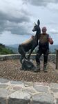 We came to a lookout with the brass Deer statue so we stopped to take some pics. We continued on and made it to the bear. It was deserted of tourists so we rode the bikes up the short walk from the carpark to get some pictures of the bikes with the bear. Jeez it was windy up there all of a sudden amd the clouds were rolling in looking like rain.