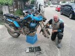 I grabbed a beer and we waited for Jules and Kirky. They seemed to be taking ages. Eventually they appeared round the corner but Kirky had his hazards flashing. They rolled up amd Kirky had a flat front which he got a few miles out of town but decided to slowly roll into town to fix it at the hotel.