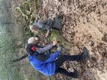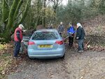 We finished the sawing & clearing in good time only to be greeted by a lady who was a tad unhappy with her husband for driving up the Mutters moor road (the UCR). Where he then turned left in front of the 9th green heading up the bridleway towards the top of Mutters moor, only then he thought this might be wrong I'll try and turn around....Well the team of volunteers pushed & pulled the car out of the bog onto the hard stone section just in front of the 10th Tee.